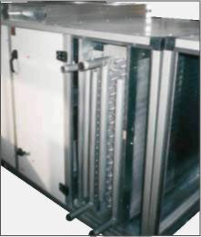 Heating and cooling system, batteries are placed into a cell type is determined by the type of fluid used.They can be with cold, hot water, steam, direct expansion or electric heater. Batteries are as standard consists of copper pipes and aluminum fins. Cell cross-section is determined by the speed of air passing through the battery. The average air velocity from 2.5 to 3 m / sec.