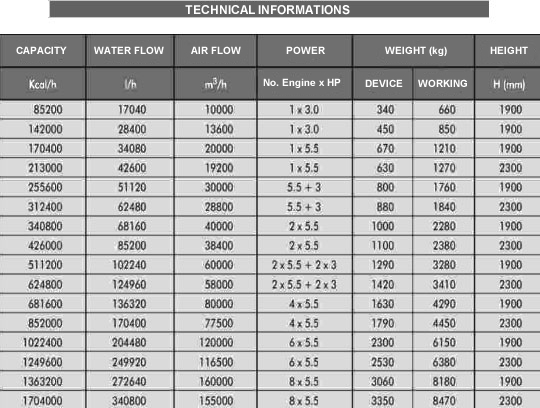 Centrifugal water-cooling towers are produced 16 standart types with 100,000 kcal / h - 1,750,000 kcal / h cooling capacity.With centrifugal fans work quiet and systematic.